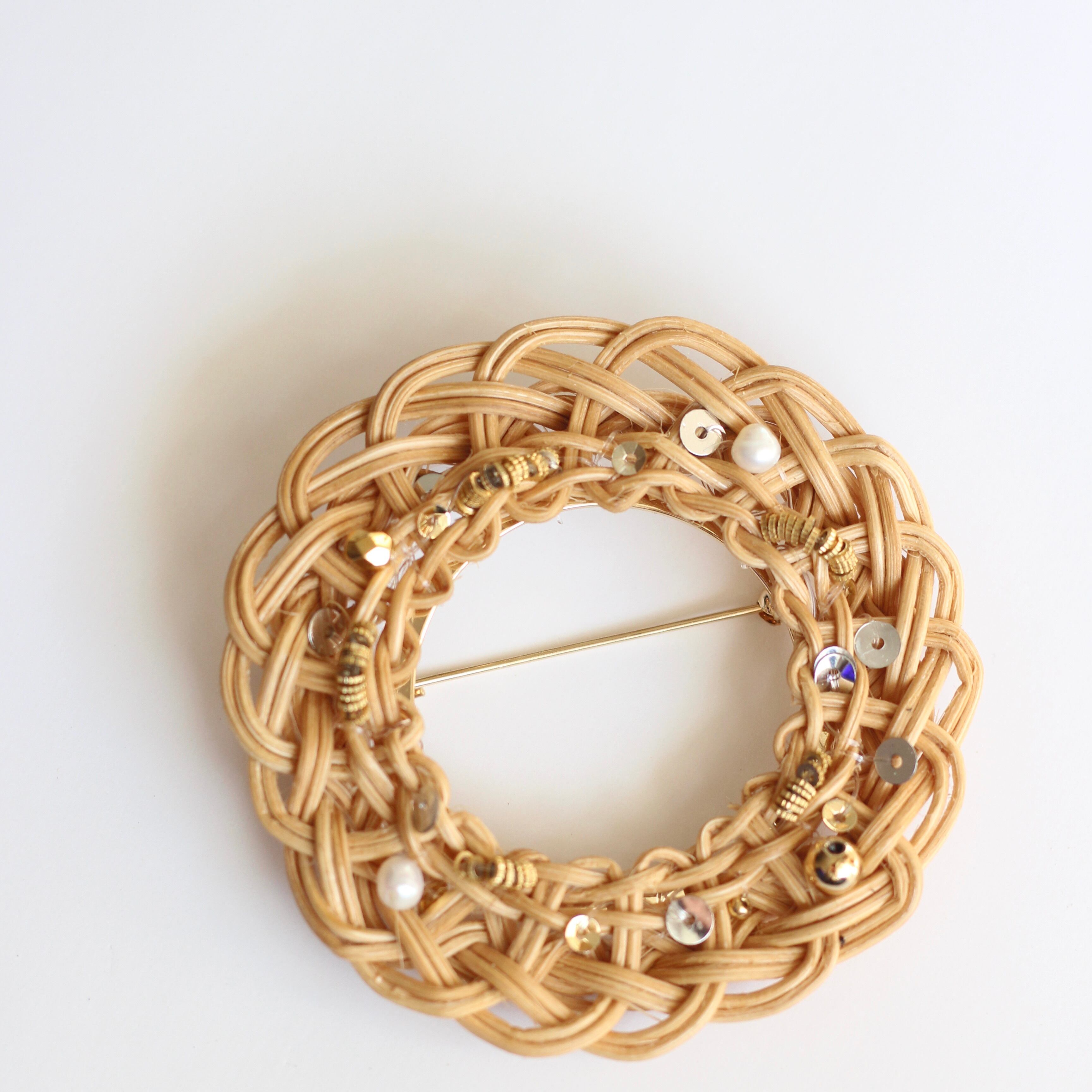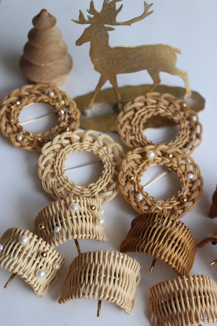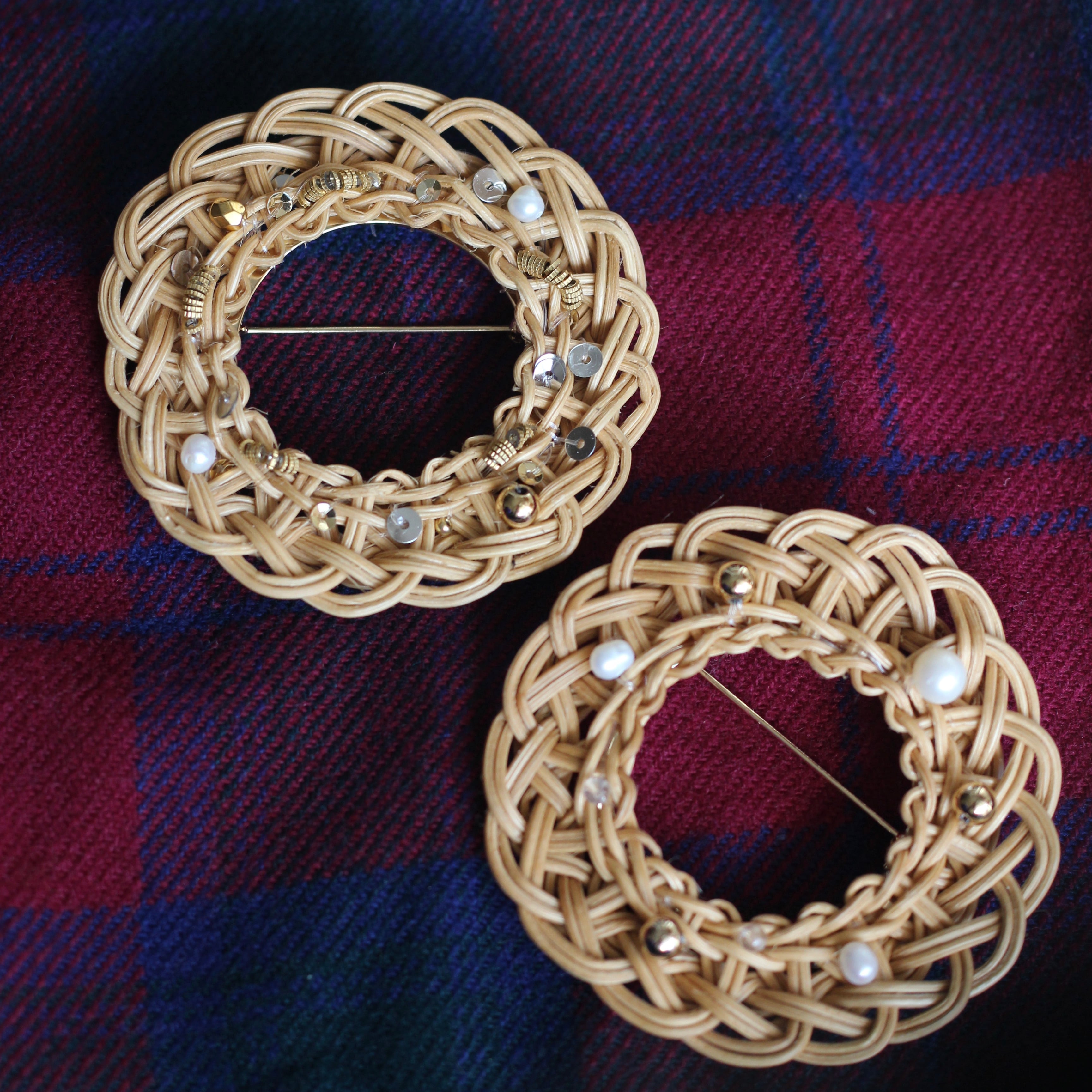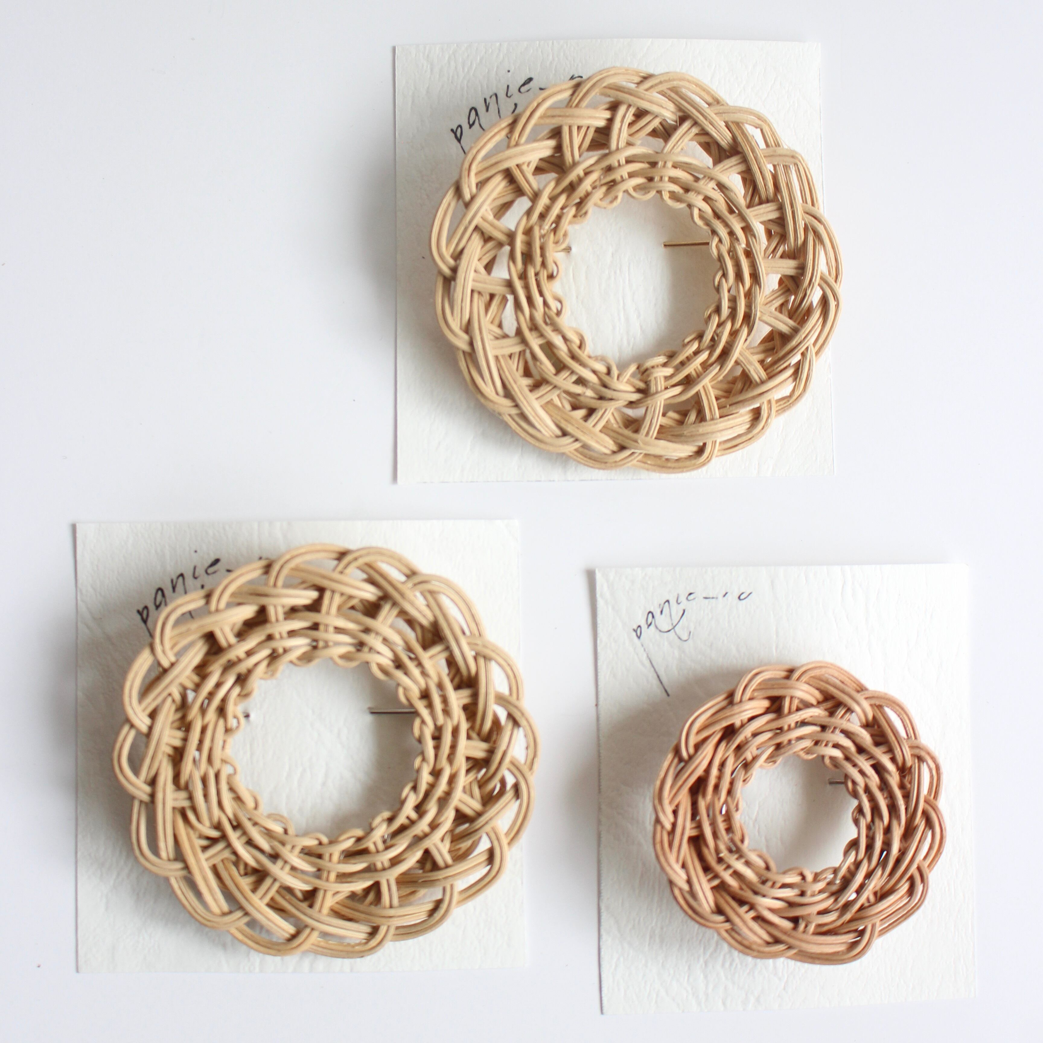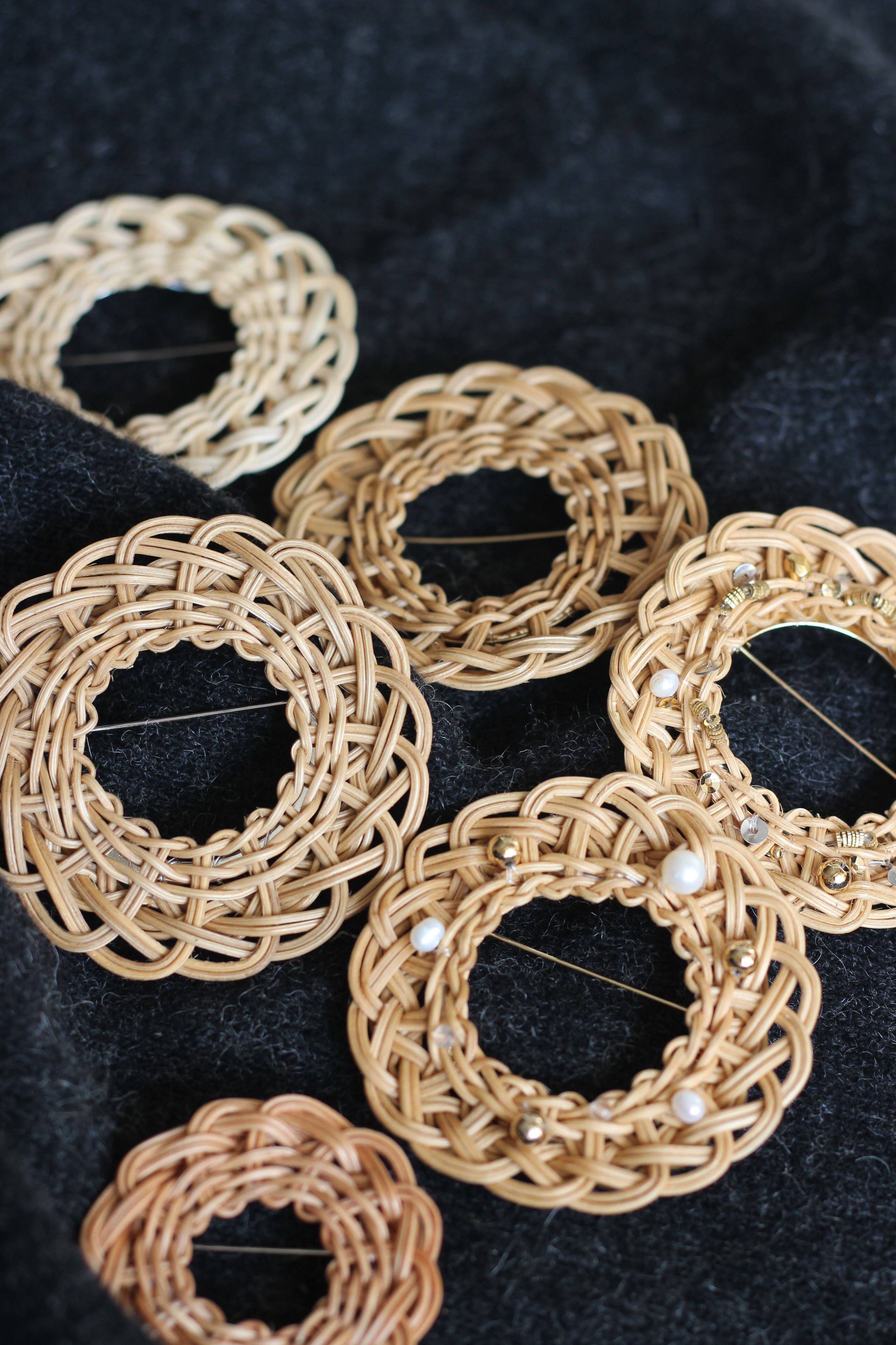 ・ラタンブローチ装着する際に、ラタン部分を強く力を入れると折れることがありますので